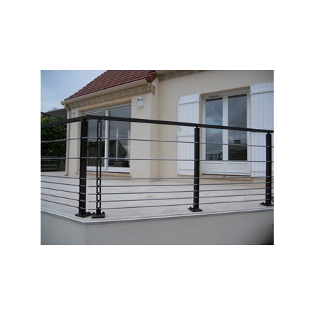 • Poteaux en fer plein, main-courante tubulaire largeur 50 mm, panneaux à barreaudage en fer plein de 12 x 12 mm.