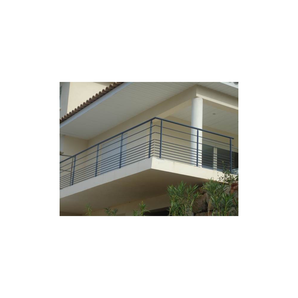 • Poteaux en fer plein, main-courante tubulaire largeur 50 mm, panneaux à barreaudage en fer plein de 12 x 12 mm.