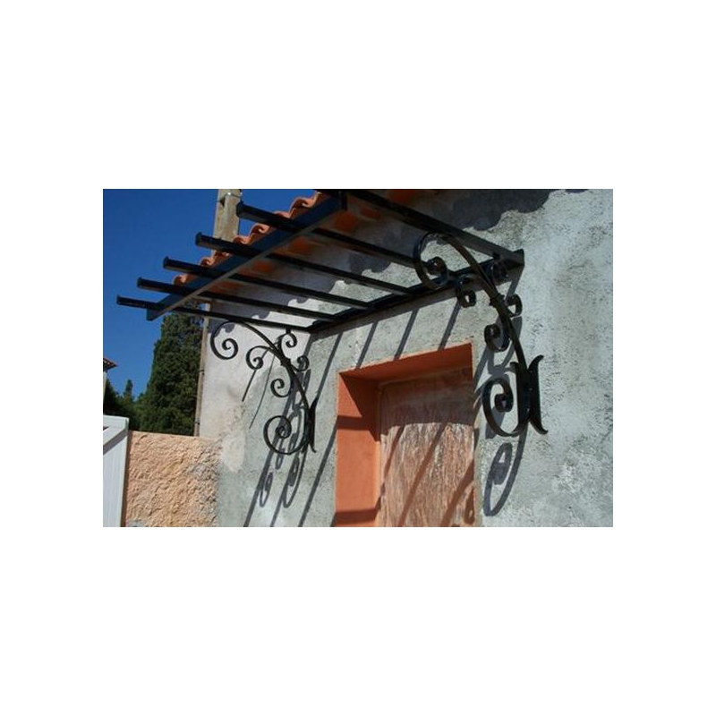 Nous pouvons aussi vous fournir des marquises avec une métallisation:le fer est sablé pour enlever toute oxydation et aussitot il est recouvert d 'une pelliculle de zinc en fusion;aspect légèrement granuleux au toucher;compter environ 550€ pour un traitement complet